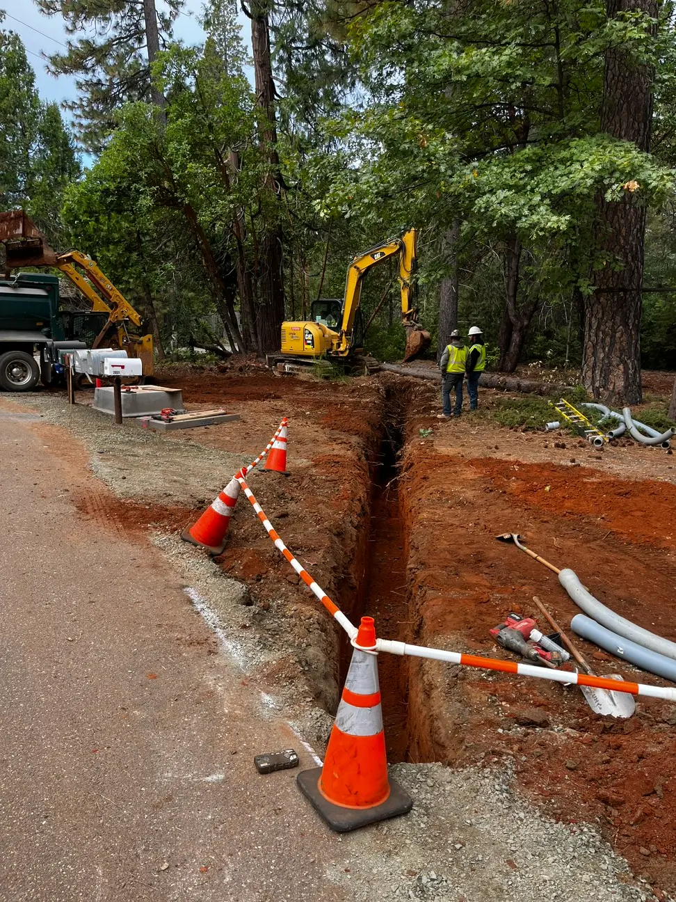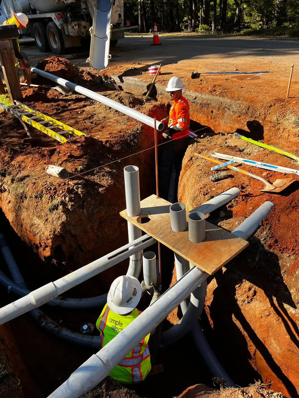 Ample Electric performed heavy civil construction for the underground conversion of overhead electrical distribution systems in active public and residential corridors. Our team self-performed excavation, trenching, conduit installation, potholing, pad construction, enclosure setting, slurry production, and full site restoration, while coordinating all utility locating (811/USA), GPR services, trucking, and stakeholder communication.