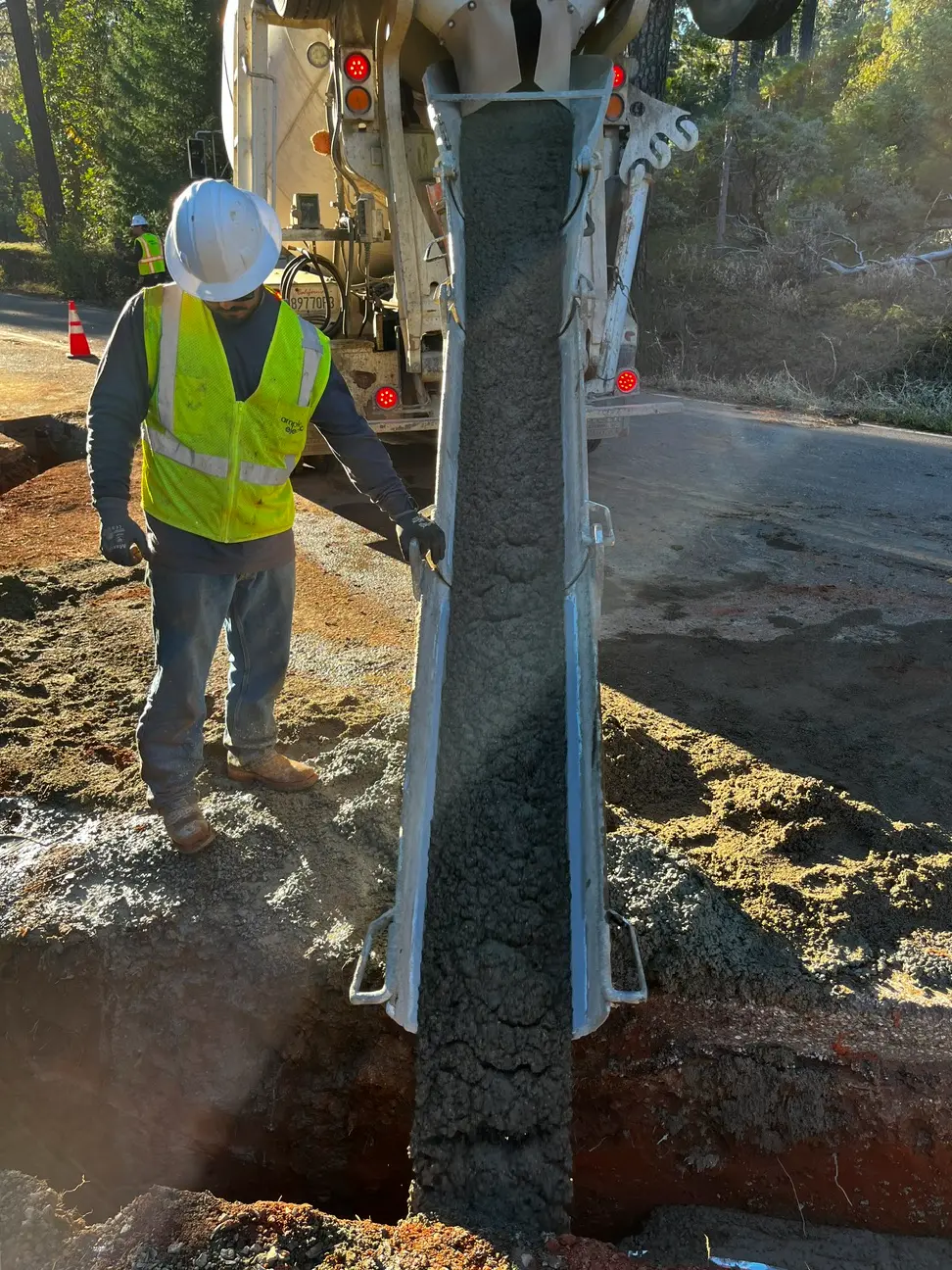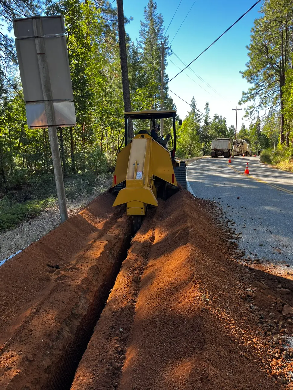 The project included nearly 34,000 LF of trenching and over 40,000 LF of conduit installation, along with 450+ potholes to safely verify existing utilities. We installed 45 equipment pads, set 43 enclosures, and placed protective bollards, while restoring roadways and producing over 5,000 CY of slurry through our in-house batch plant.