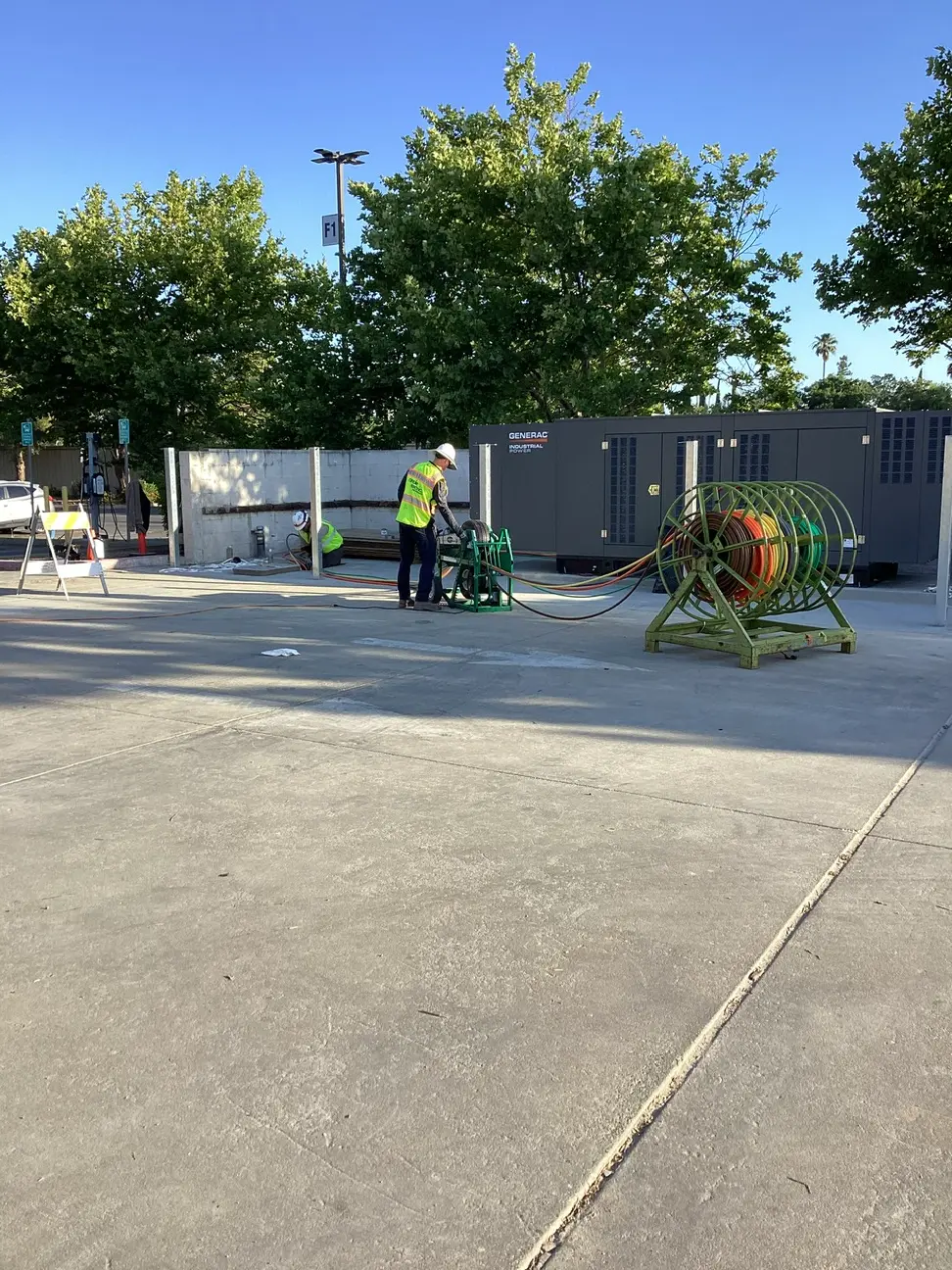 The project involved the installation of one generator within an existing CMU (Concrete Masonry Unit) enclosure, which was enhanced with a newly constructed screen wall and custom-fabricated access gates along the front elevation. The second generator installation required the full construction of a new CMU enclosure designed to function as a dual-purpose generator and trash enclosure, complete with custom-fabricated gates and dedicated equipment foundations.