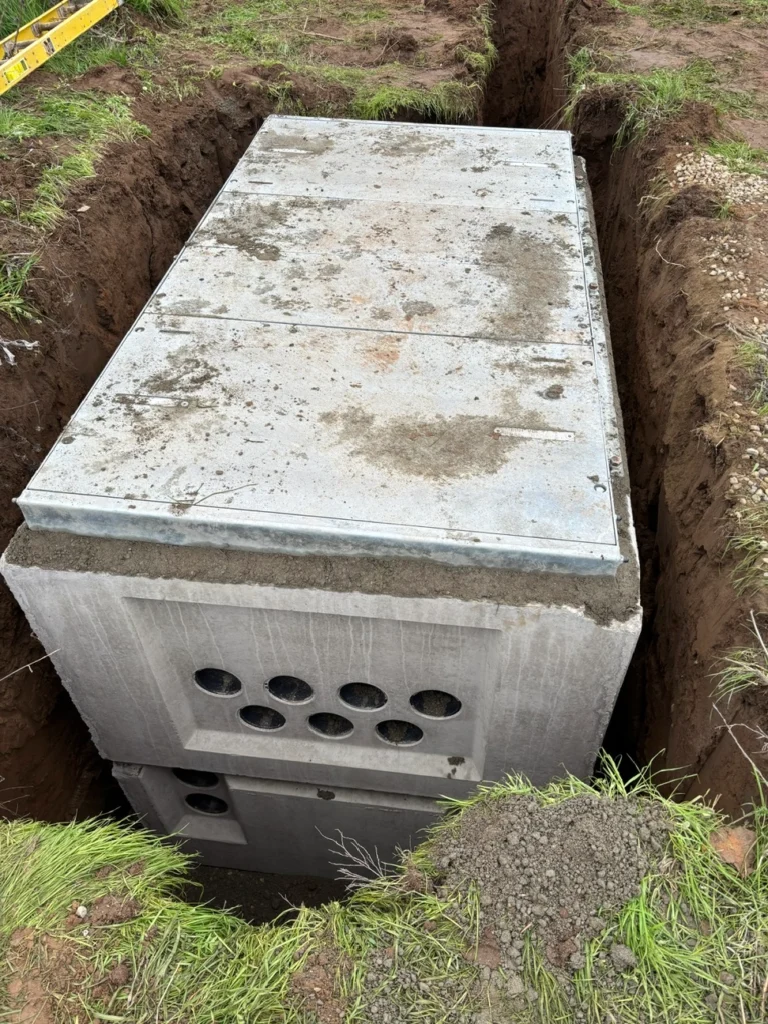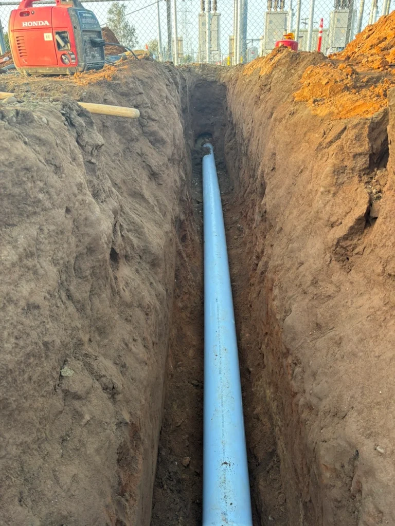 Across two phases, our team completed over 14,000 LF of trenching and installed more than 25,000 LF of conduit, along with utility verification, enclosure setting, and equipment pad construction. The project included 100+ potholes, installation of 39 enclosures, and multiple equipment pads, as well as temporary paving and roadway restoration to maintain safe access throughout construction.